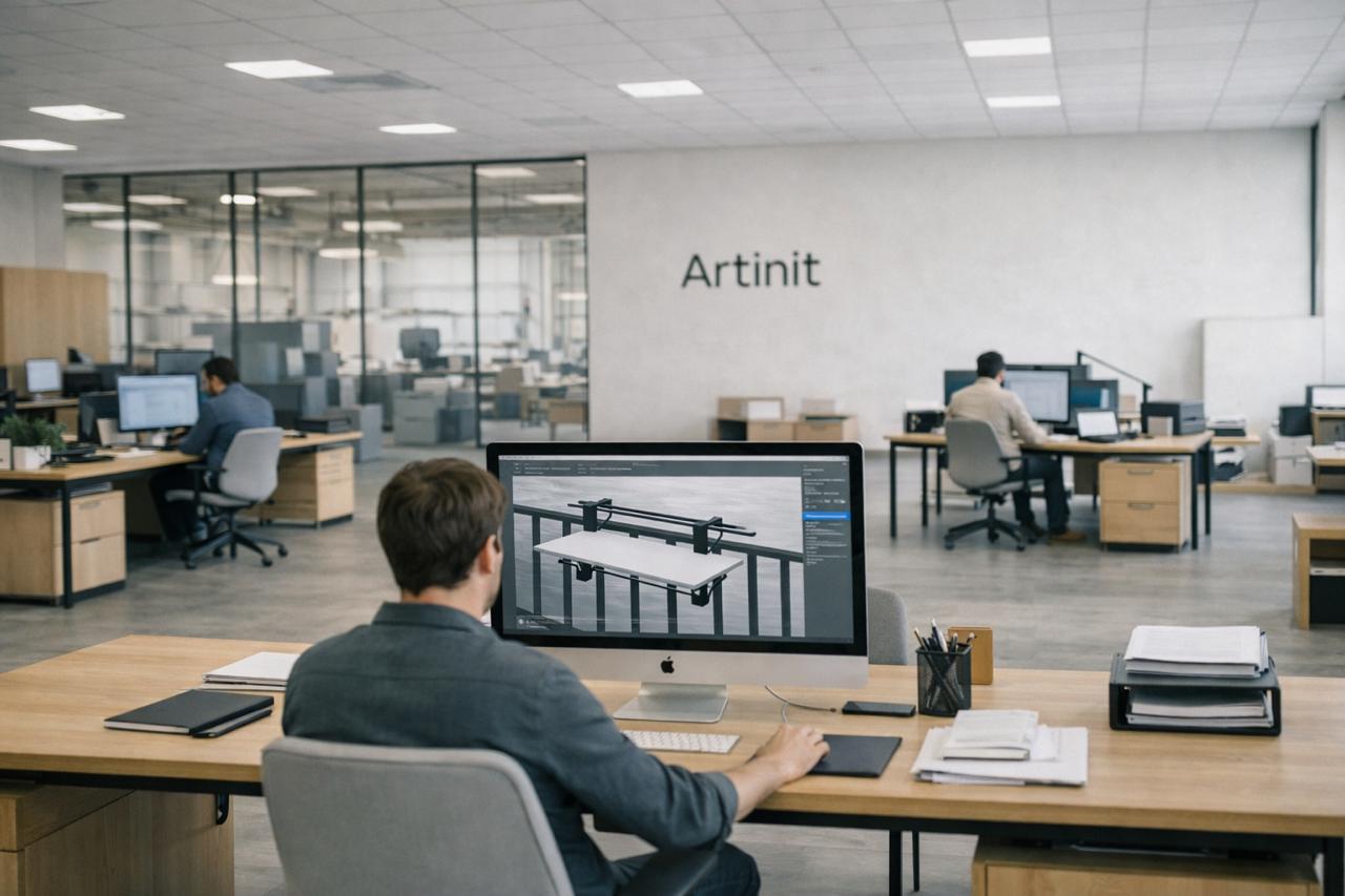 At Artinit Studio, all production processes take place in our own dedicated manufacturing facility, allowing for complete control at every stage of the production process. Equipped with professional machinery and modern production systems, our facility enables us to produce both standard collections and special projects, from design and technical preparation to precise cutting, surface treatment, and final quality control.